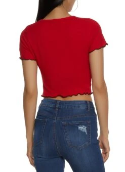 Ribbon Trim Long Sleeve Mesh Crop Top