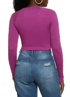 Seamless Cable Knit Mock Neck Short Sleeve Top