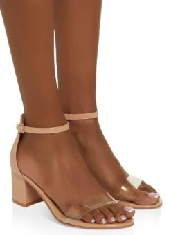 Single Band Ankle Strap Mid Heel Sandals