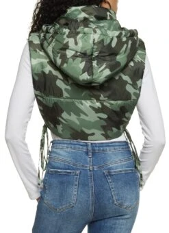 Side Tie Cropped Hooded Puffer Vest