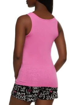 Sleep Love Flirt Foil Screen Graphic Pajama Tank And Shorts