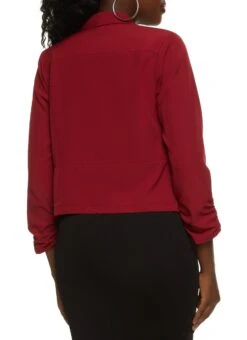 Solid Crepe Knit Ruched Sleeve Blazer