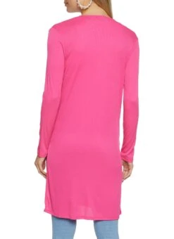 Solid Ribbed Knit Lettuce Edge Pajama Top And Pants