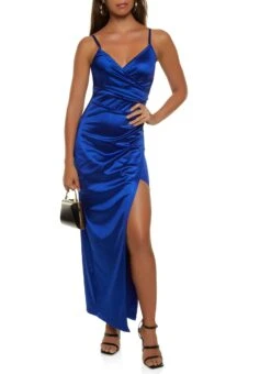 Solid Wrap Satin Cami Dress