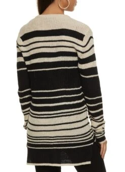 Striped Heart Print Notch Collar Pajama Shirt And Pants