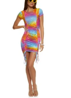 Tie Dye Ruched Front Mini T Shirt Dress