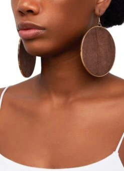 Wooden Circular Drop Earrings And Stretch Bracelet