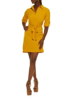 Crepe Knit Tabbed Sleeves Shirt Dress