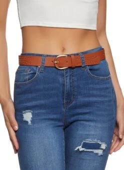 Faux Leather Perforated Belt Duo