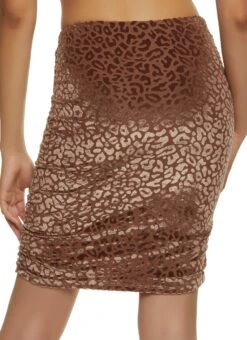 Leopard Velvet Burnout Ruched Pencil Skirt