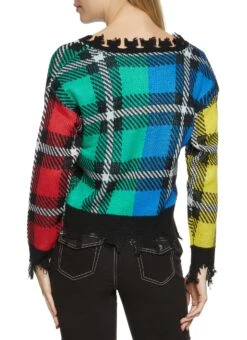 Plaid Patch Distressed Cardigan