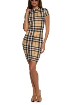 Plaid Mock Neck Bodycon Dress