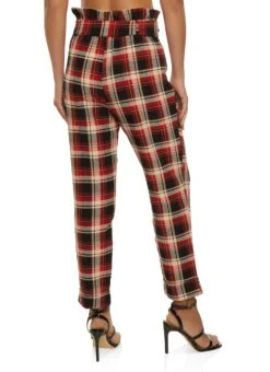 Plaid Paper Bag Waist Pants